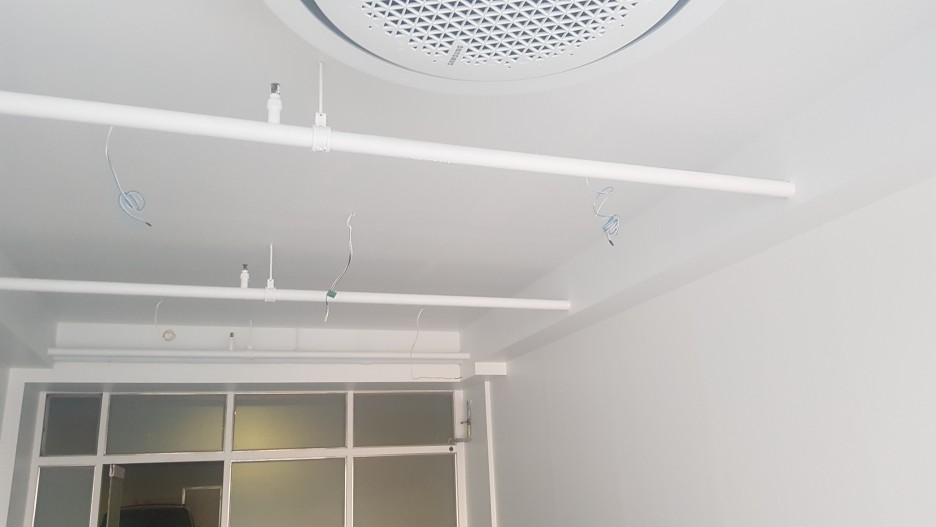 천장에 라인시스템 조명 설치와 팬턴트 등 설치를 의뢰 받았습니다.
