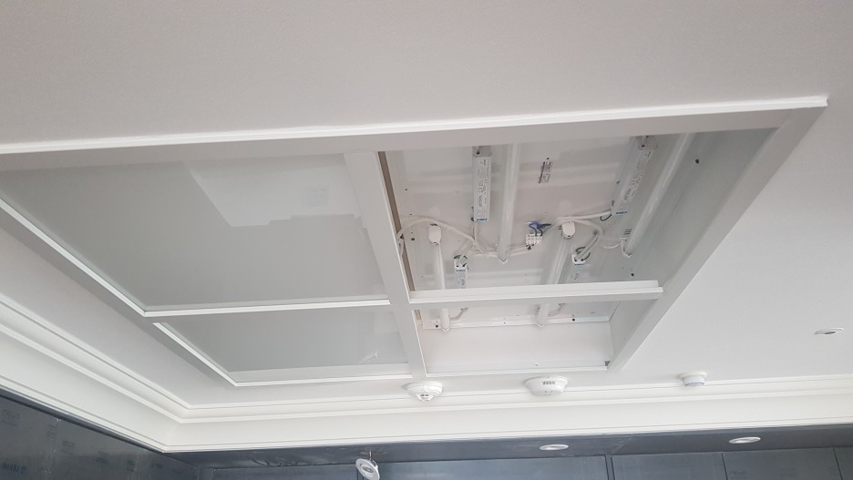 기존 있던 형광등 주방 조명 철거 후 LED전등으로 교체 작업 입니다.